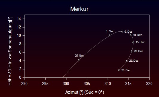 | 07.12. | Konstellation Mond + Jupiter | ab 20 Uhr |